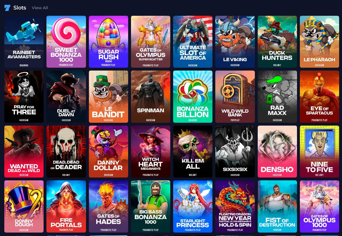 Des titres fournis par 49 fournisseurs de jeux de casino sont disponibles. Cela inclut NetEnt, Nolimit City, Play ‘n GO, Blueprint Video Gaming, Development Gaming, Pragmatic Play, Quickspin, Yggdrasil Video Gaming, Red Tiger PC Gaming, Thunderkick, Big Time Video Gaming, Evoplay, BGaming, Endorphina, Wazdan, Habanero, Red Rake Gaming, Spinomenal, Belatra Games, Kick Back Video Gaming, Bullshark Gamings, Smartsoft Video Gaming, Fantasma Games, Platipus, Amigo PC Gaming, Rear Seat Gaming, Spribe, OneTouch, TrueLab Gamings, NowNow Gaming, SlotMill, Onlyplay, PG Soft (Pocket Games Soft), Penguin King, VoltEnt, Octoplay, AvatarUX, Peter & Sons, Retro Video Gaming, 3 Oaks Video Gaming, 1spin4win, Zillion Gaming, Shady Girl, Popiplay, Clawbuster, Hacksaw Gaming, Netgame, Publish Studios et BT. Jeux.